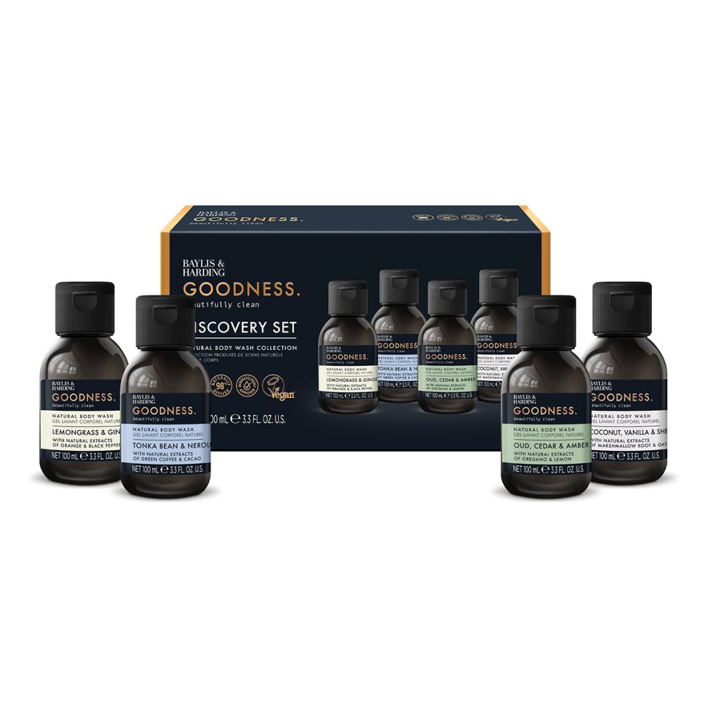 Dopřejte si chvilku jen pro sebe a objevte sílu přírody v kolekci sprchových gelů Baylis & Harding Goodness Discovery Collection. Čtyři harmonicky sladěné vůně, založené na přírodních ingrediencích, promění běžnou sprchu v relaxační rituál a zanechají pokožku jemnou, hebkou a provoněnou. Každý gel je obohacen o jedinečnou směs esenciálních olejů a pečujících přírodních výtažků, které podpoří vaši náladu v každém okamžiku dne – od ranního osvěžení až po večerní zklidnění. Praktická 100ml balení jsou ideální na vyzkoušení všech vůní, na cesty i jako hezký dárek.