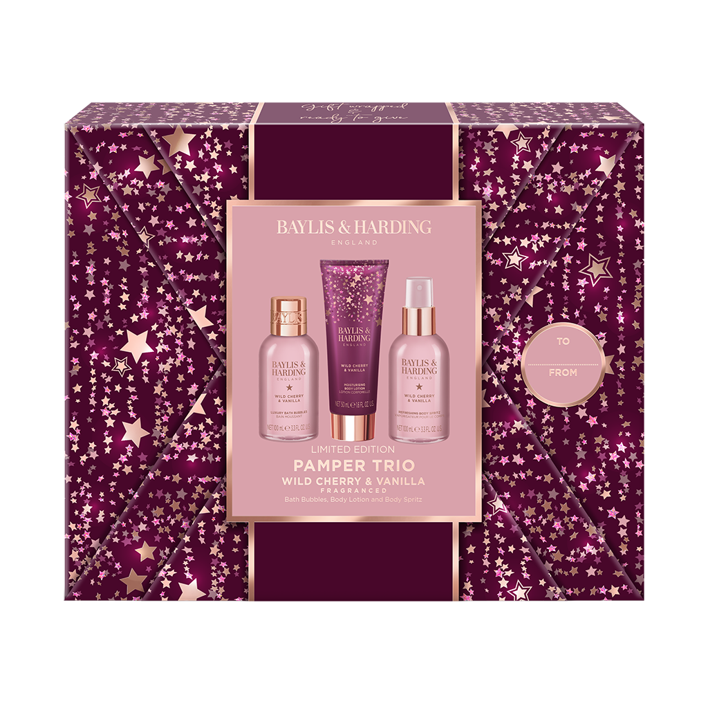 Baylis & Harding Wild Cherry & Vanilla Gift Wrapped Pamper Trio Gift Set Baylis & Harding