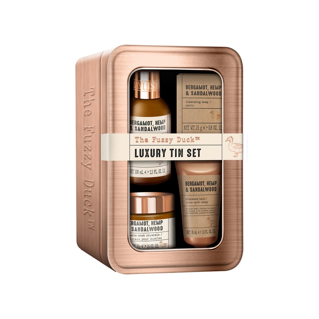 V prémiové kolekci péče pro muže The Fuzzy Duck se snoubí divoká krása přírody s gentlemanskou elegancí a sofistikovaným vzhledem. Rustikální estetika inspirovaná přírodními materiály kombinuje šedé a měděné tóny s etiketami v typickém lékárnickém stylu. Vytvořeno s jedinečnou vůní, která spojuje hřejivé konopí s jemnými tóny santalového dřeva a špetkou energizujícího bergamotu.