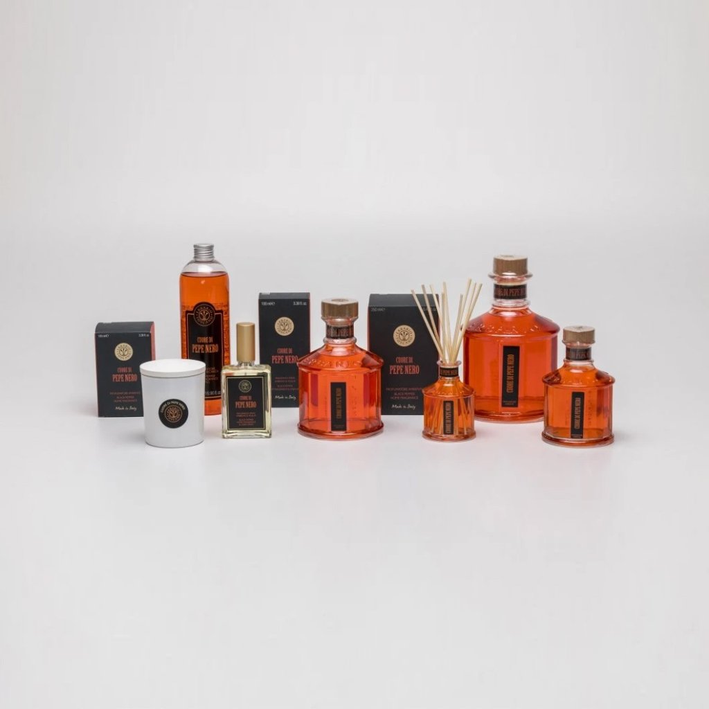 Tato vonná svíčka ve skle, s vůní černého pepře, vás zahalí do intenzivního a jiskrného aroma. Její smyslné, tajemné a hřejivé tóny na dřevitém základu s srdcem ambry evokují pocit klidu a pohody. Vyrobeno s pečlivostí v Itálii, tato svíčka s jedním bavlněným knotem nabízí přibližně 30 hodin aromatického světla, přinášející do vašeho prostoru sofistikovaný dotek elegance.