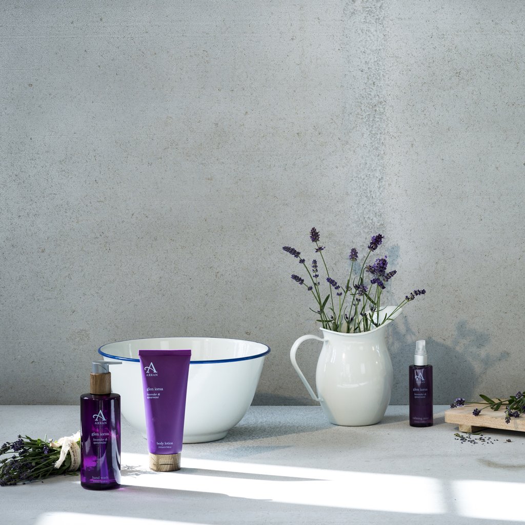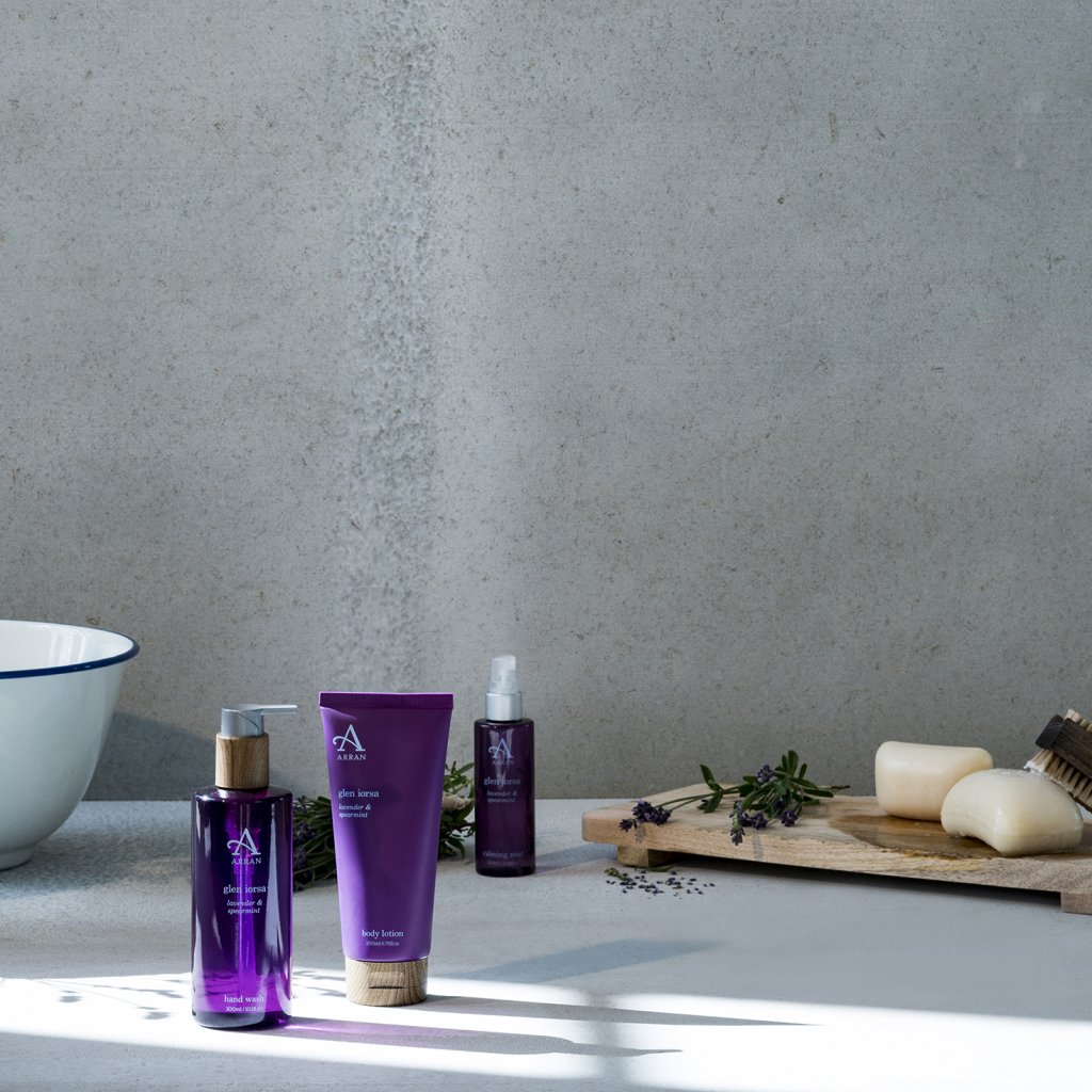Zklidňující mlha na polštář s vůní levandule, máty, geránie a šalvěje.