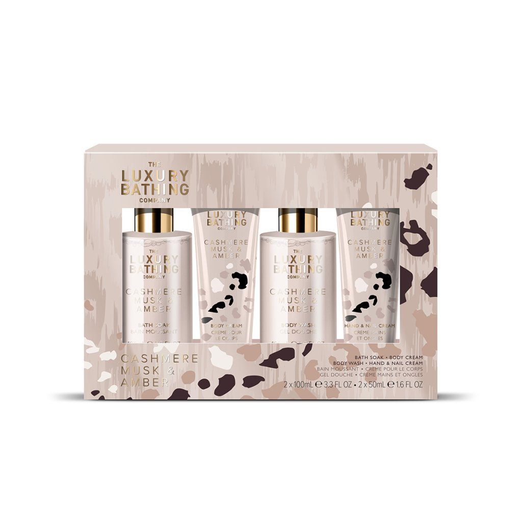 Popis kolekce: Our Cashmere, Musk & Amber collection blends warm taupe tones, soft satin textures and subtle animal-inspired accents to create a sense of gentle, modern luxury. With elegant gifting and indulgent bath and body treats, this range brings a cosy, cocooning night-in experience to everyday self-care.