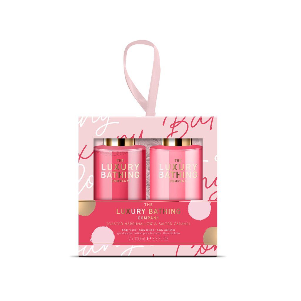 Popis kolekce: Our Toasted Marshmallow & Salted Caramel collection brings a playful, feel-good energy with its bold pink palette, expressive patterns and fun, feminine design. Packed with pampering treats - from bath fizzers to body mists - each gift set delivers a vibrant, joyful night-in experience.