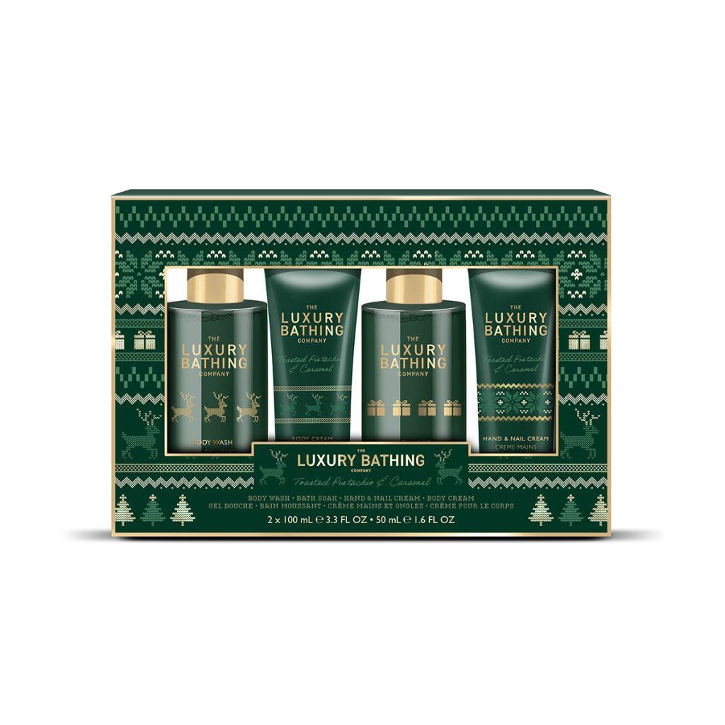 Popis kolekce: Our Toasted Pistachio & Caramel collection embraces a rich, heritage Christmas aesthetic with deep green tones, Fair Isle patterns and warm golden accents. Filled with thoughtful festive treats - from novelty treeshaped gifts to cosy winter warmers, this range brings a touch of timeless holiday comfort to every celebration.