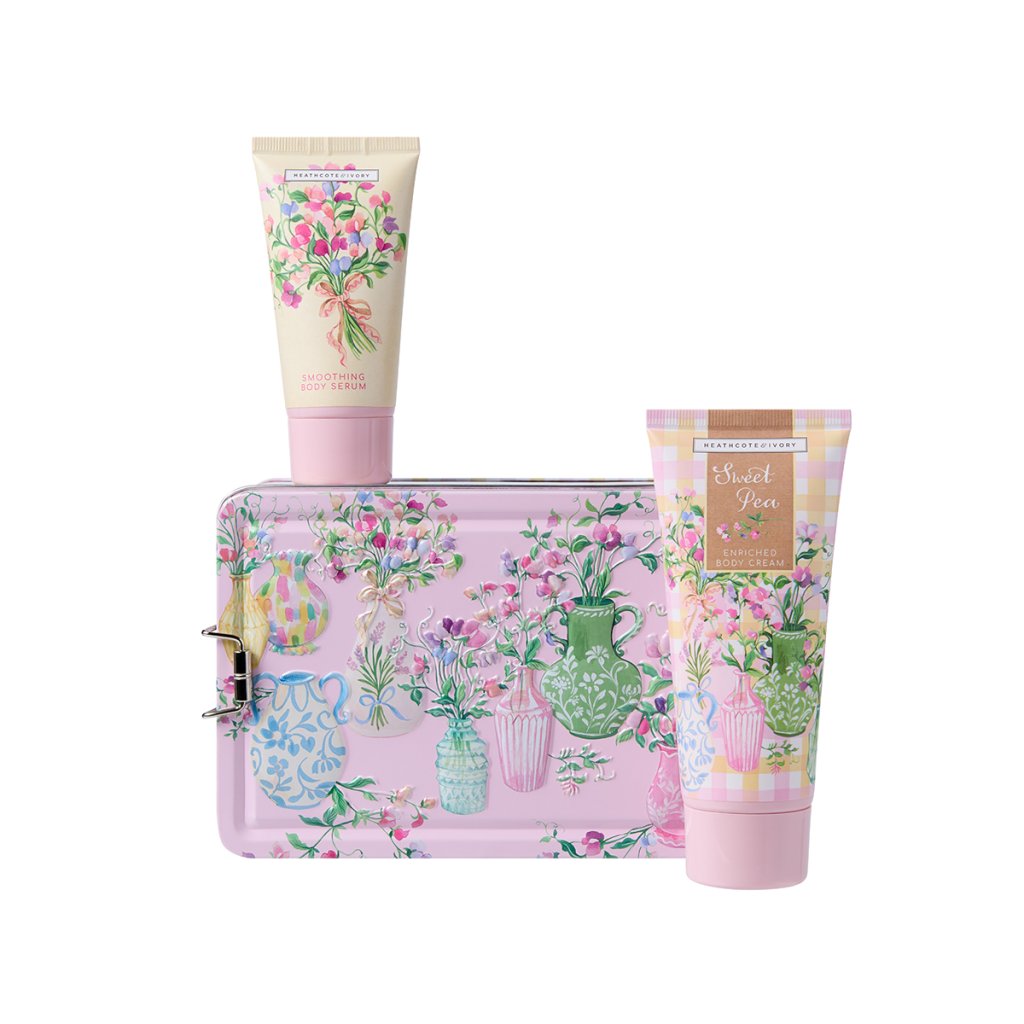 Sweet Pea, Dárková sada péče o tělo v plechové dóze, 2 ks Heathcote & Ivory
