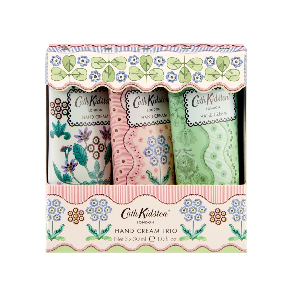 Sada tří krémů na ruce Cath Kidston kombinuje svěží vůni, účinnou péči a ikonický květinový design. Díky praktické velikosti jsou krémy perfektní na doma, do práce i na cesty.