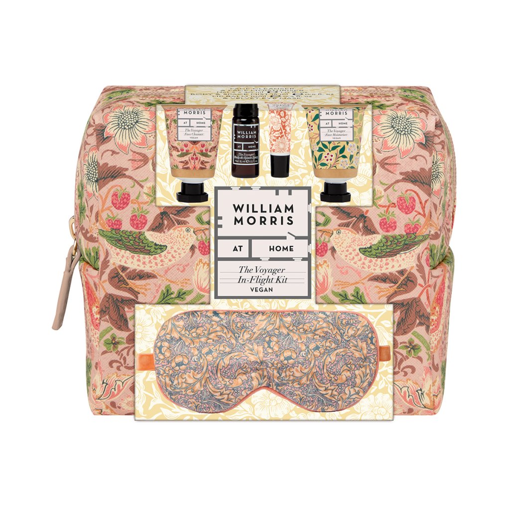 Dopřejte si komfort i během dlouhého letu! The Voyager In-Flight Kit v ikonickém vzoru Strawberry Thief obsahuje čtyři pečující nezbytnosti a sametovou masku na oči, které zpříjemní cestování na dlouhé vzdálenosti. Stylová cestovní taštička ukrývá vše potřebné pro svěží a upravený vzhled po příletu.