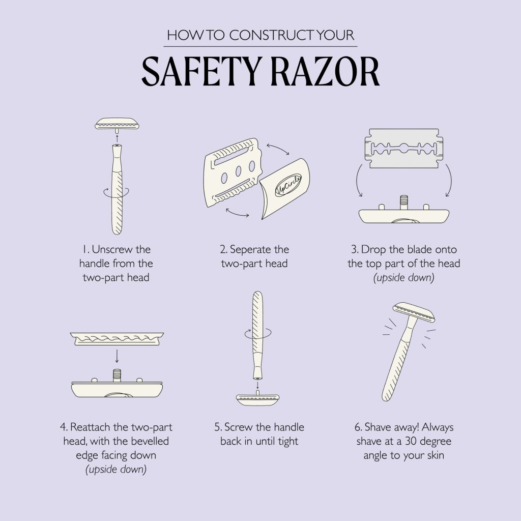 Holicí strojek je vyrobený bez použití plastů. Je odolný a znovupoužitelný. V balení jsou dvě náhradní žiletky. Je šetrný k pokožce a nezpůsobuje podráždění.