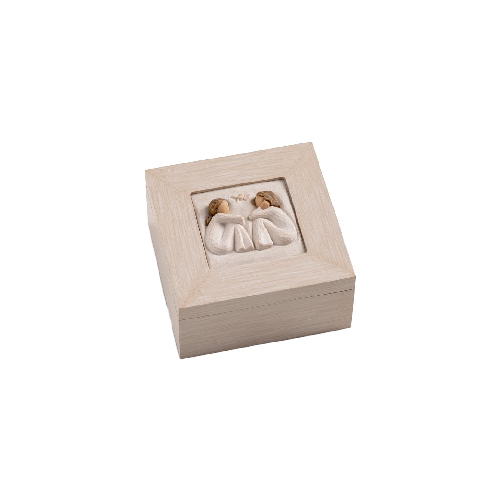 Historie kolekce Willow Tree začala v lednu roku 2000 a obsahovala pouze jedinou figuru, 15 andělů a Betlém. Postupem času se kolekce rozšiřuje tak, aby obsahovala vše důležité. Vše, co chceme sdělit našim přátelům, rodině, všem blízkým a drahým, které v životě potkáváme. Každá z figur představuje vlastnost či sentiment, který nám pomáhá vážit si lidí kolem nás, léčit zraněné, či objevit krásu okolního světa. S touto myšlenkou ve svém srdci vyřezávala Susan Lordi každou svoji figuru. Sdělení, které každá z figur nese je vyjádřeno pouze gesty. Tento způsob uměleckého projevu velmi citlivě a obdivuhodně vyjadřuje lásku, vzájemnou blízkost, uzdravení, odvahu... jednoduše všechny emoce, které v našich životech prožíváme. Jednotlivé skulptury vše naznačují pomocí jednoduchých a elegantních gest... sklonem hlavy, umístěním ruky či natočením těla. Právě jejich zdrženlivost je činí přesvědčivými. |