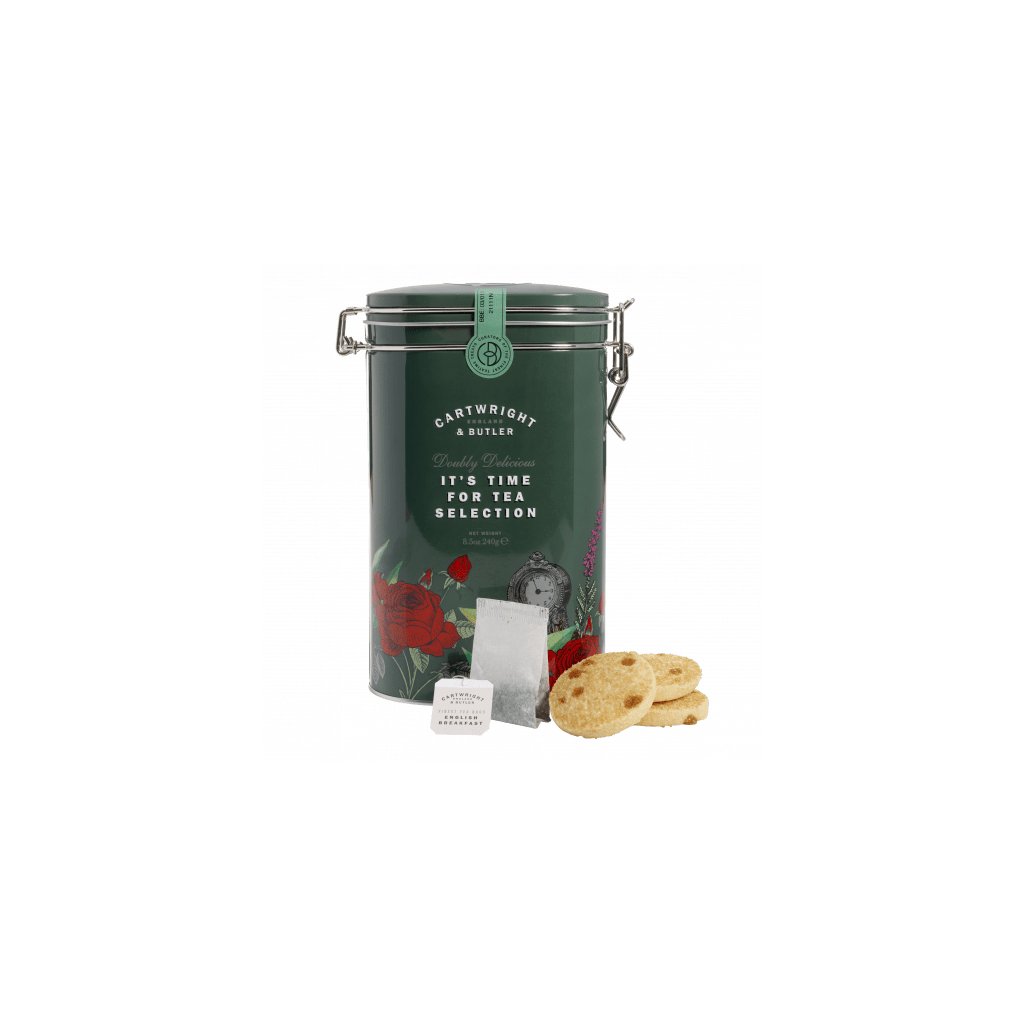It's Time For Tea Selection, Dóza s máslovými sušenkami a čajem English Breakfast, 240 g Cartwright & Butler