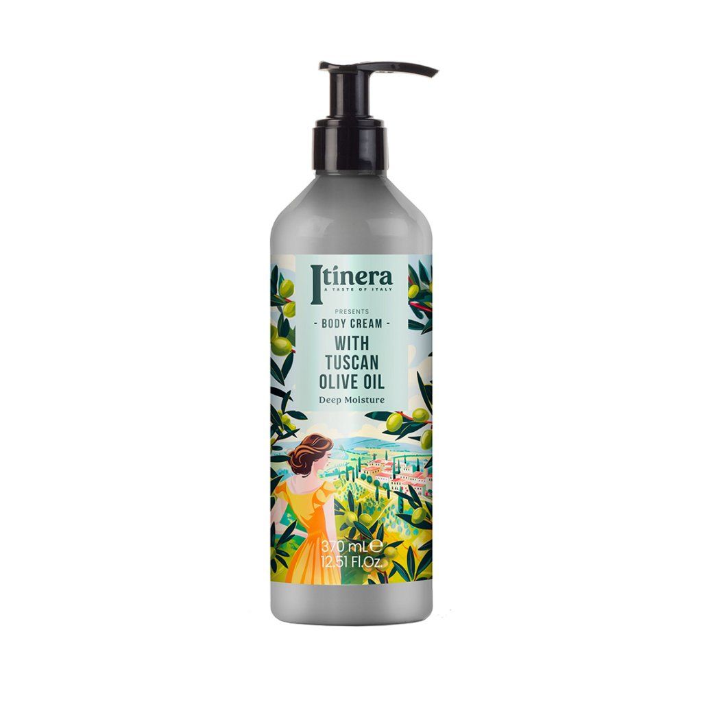 Tělový krém italské značky Itinera nabízí intenzivní 48hodinovou hydrataci díky toskánskému olivovému oleji, který pokožku vyživuje do hloubky a reguluje její přirozenou hydrataci. Složení s 96 % přírodních složek kombinuje výjimečné vlastnosti bambuckého másla, sladkého mandlového oleje a glycerinu, které společně vytvářejí ochranný hydratační film, podporují pružnost pokožky a zklidňují zarudnutí či podráždění. Lehká textura krému se rychle vstřebává, zanechává pokožku sametově hebkou, hydratovanou a provoněnou jemnými tóny květin, zelených lístků, ovoce a dřeva. Je ideální i pro citlivou pokožku.