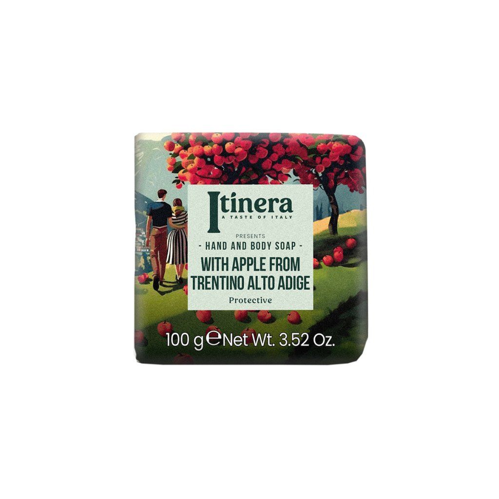 Dopřejte své pokožce ochranu a regeneraci s Itinera tuhým mýdlem, obohaceným o extrakt z jablka, které je přirozeným zdrojem vitamínu A a minerálů. Toto rostlinné mýdlo obsahuje 98 % přírodních složek a je navíc obohaceno o rostlinný glycerin, který zajišťuje hydrataci a zanechává pokožku jemnou a hebkou po každém mytí. Kombinace jablek, hroznových výlisků, citronu z pobřeží Amalfi a pšeničných otrub z Pádské nížiny dodává mýdlu vyživující a regenerační vlastnosti, které pomáhají chránit pokožku před vysoušením a podporují její zdravý vzhled. Smyslná ovocná vůně s tóny zralých plodů a teplých akordů navodí pocit pohody při každém mytí. Ekologické balení a přírodní složení podtrhují závazek k udržitelnosti.