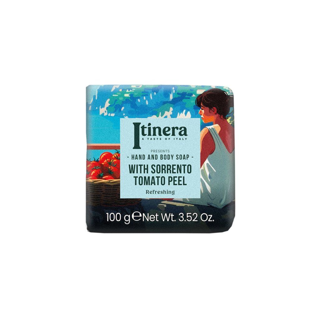 Dopřejte své pokožce osvěžující péči s Itinera tuhým mýdlem na ruce i tělo, obohaceným o extrakt ze slupky rajčat ze Sorrenta, bohatý na přírodní vitamíny a antioxidanty. Toto rostlinné mýdlo s 97 % přírodních složek nejen jemně čistí pokožku, ale díky glycerinu také hydratuje, zjemňuje a zanechává ji hebkou a vyživenou po každém umytí. Rajčatová slupka, známá svými tonizujícími a vyživujícími účinky, pomáhá chránit pokožku před vysoušením, zatímco podmanivá vůně rajčat, zelených lístků, koření a bylin navozuje pocit svěžesti. Ekologické balení podtrhuje závazek k udržitelnosti.