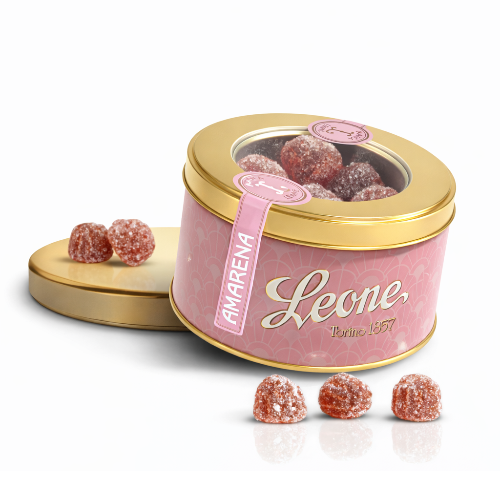 Amarena, Želé bonbony s příchutí višní v plechové dóze, 150 g Leone 1857