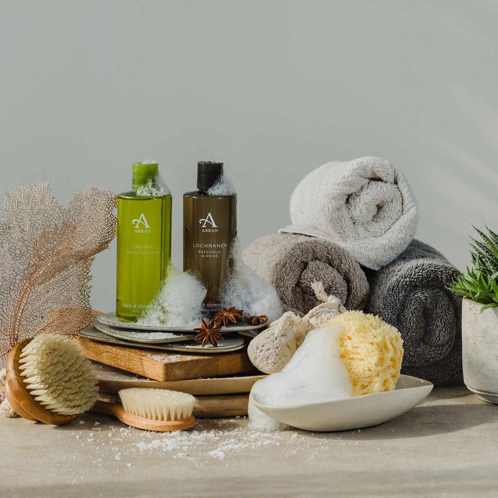 Přeneste se do divoké krásy oblasti Lochranza na severu Arranu a vychutnejte si jedinečnou směs pačuli a cedru obohacenou nádechem citronu a grapefruitu nebo objevte svěžest pobřeží Machrie a ponořte se do povzbuzující kombinace mořské soli, skalní růže a mandarinky.