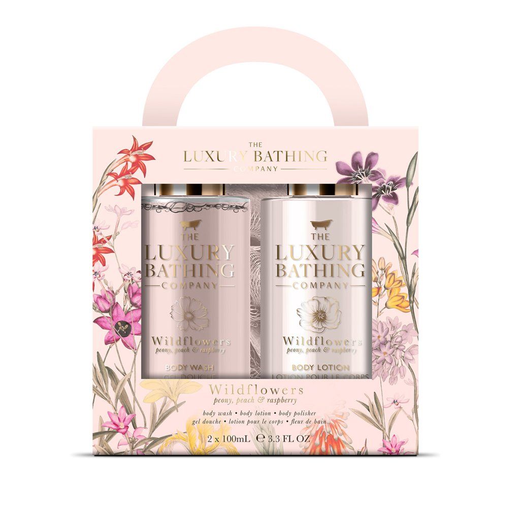 Radostná kolekce Wildflowers, inspirovaná květinami anglické zahrady, nabízí produkty v něžném, elegantním designu. Jemné kvítky v kombinaci s pudrově růžovou barvou a zlatými detaily zdobí dárková balení vytvářející tuto nadčasovou kolekci. Živá ovocná vůně mandarinek a malin s květinovými tóny pivoňky a růže, zakončená teplým základem sladkých broskví osloví všechny ženy 40+.