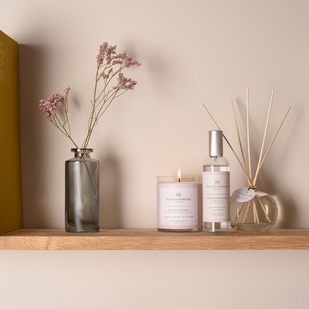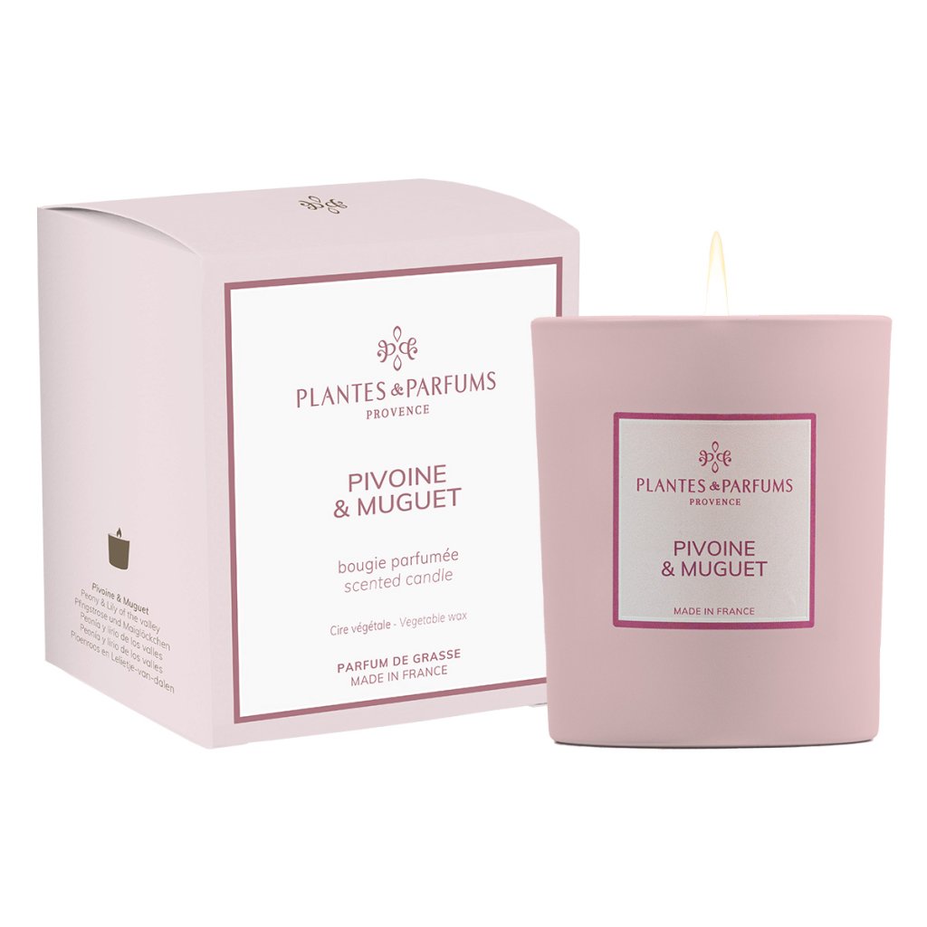 Plantes et Parfums de Provence Vonná svíčka v krabičce - Peony & Lily of the Valley, 180g
