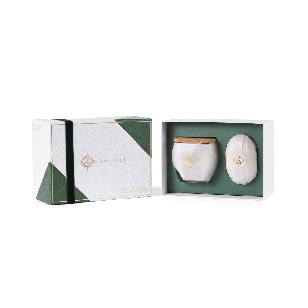Saudade Dárková sada se svíčkou a mýdlem - Cypřiš & Bergamot, 2ks
