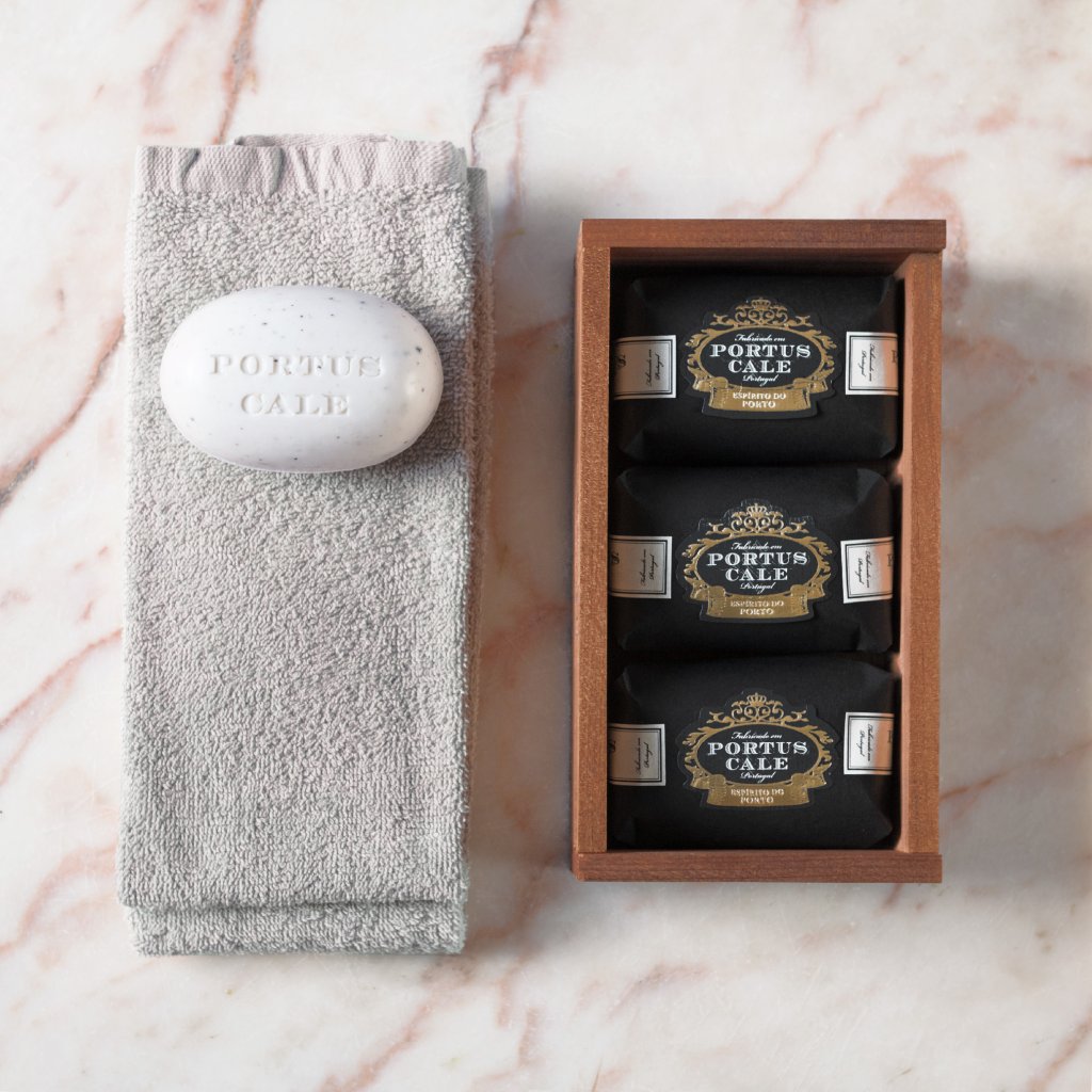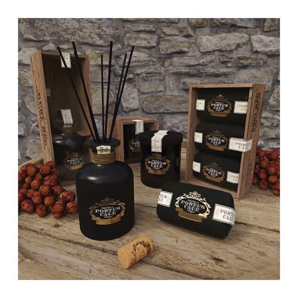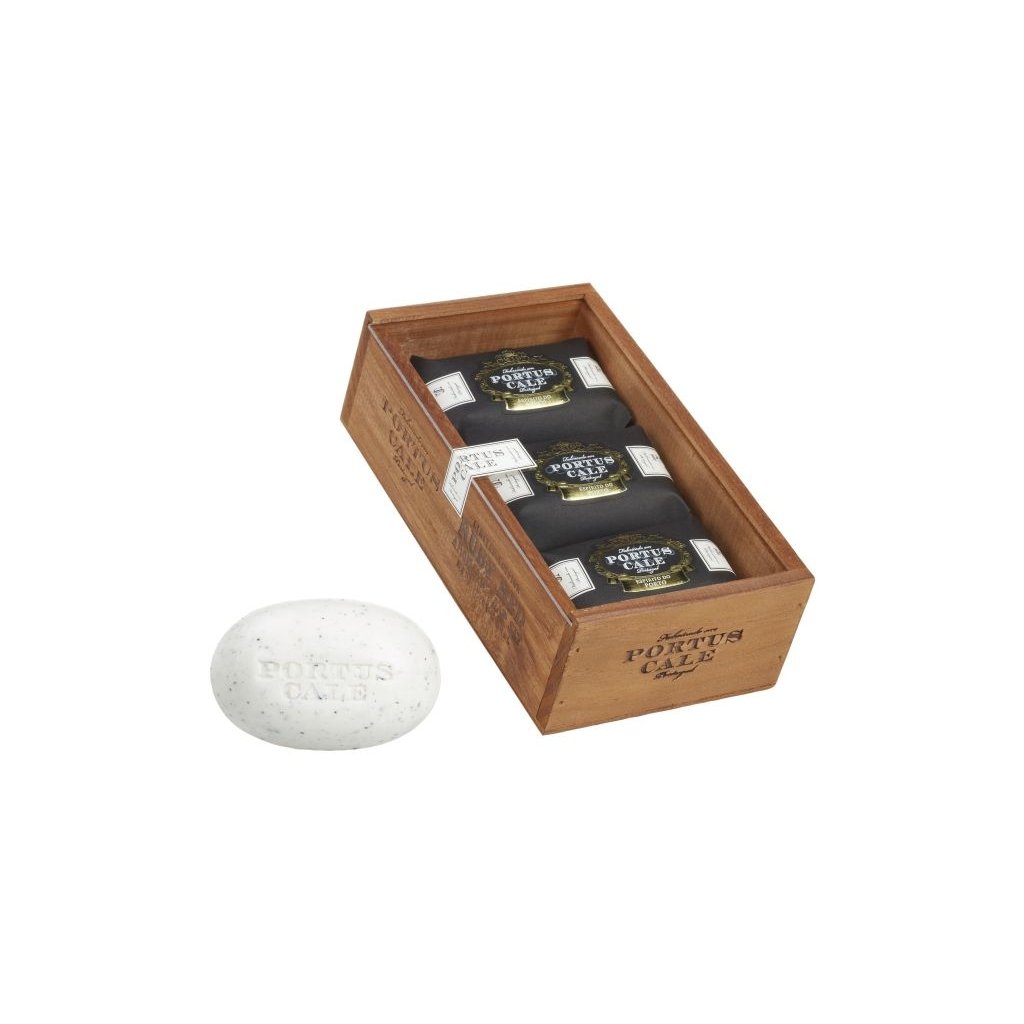 Pachet cadou cu trei sapunuri de lux marca Castelbel. Ambalat într-o cutie de lemn. Aroma bogată de struguri și fructe de pădure roșii evocă caracterul distinctiv al vinului de porto, iar combinația luxoasă de culori negru și auriu adaugă un mister îmbietor.