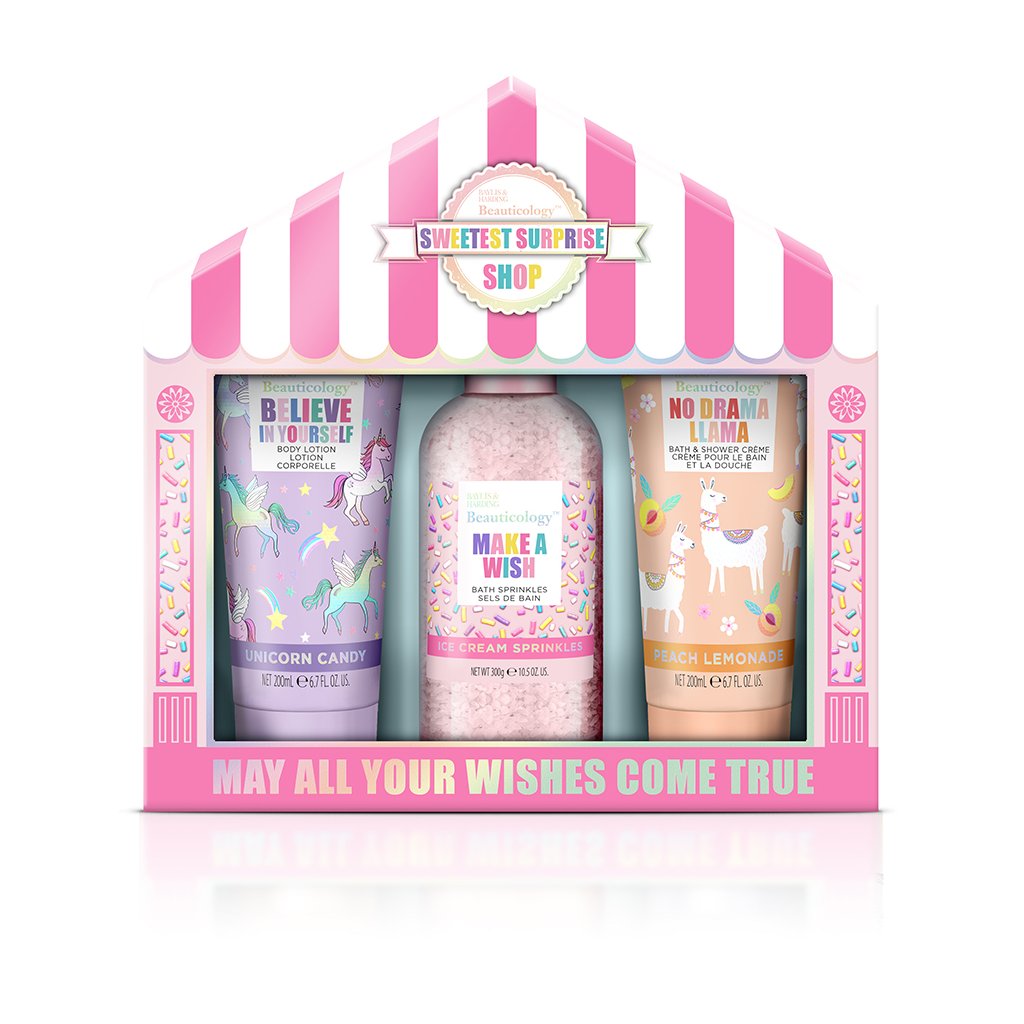 - Obsahuje, tělové mléko, koupelový a sprchový krém a krystaly do koupele ve třech vůních