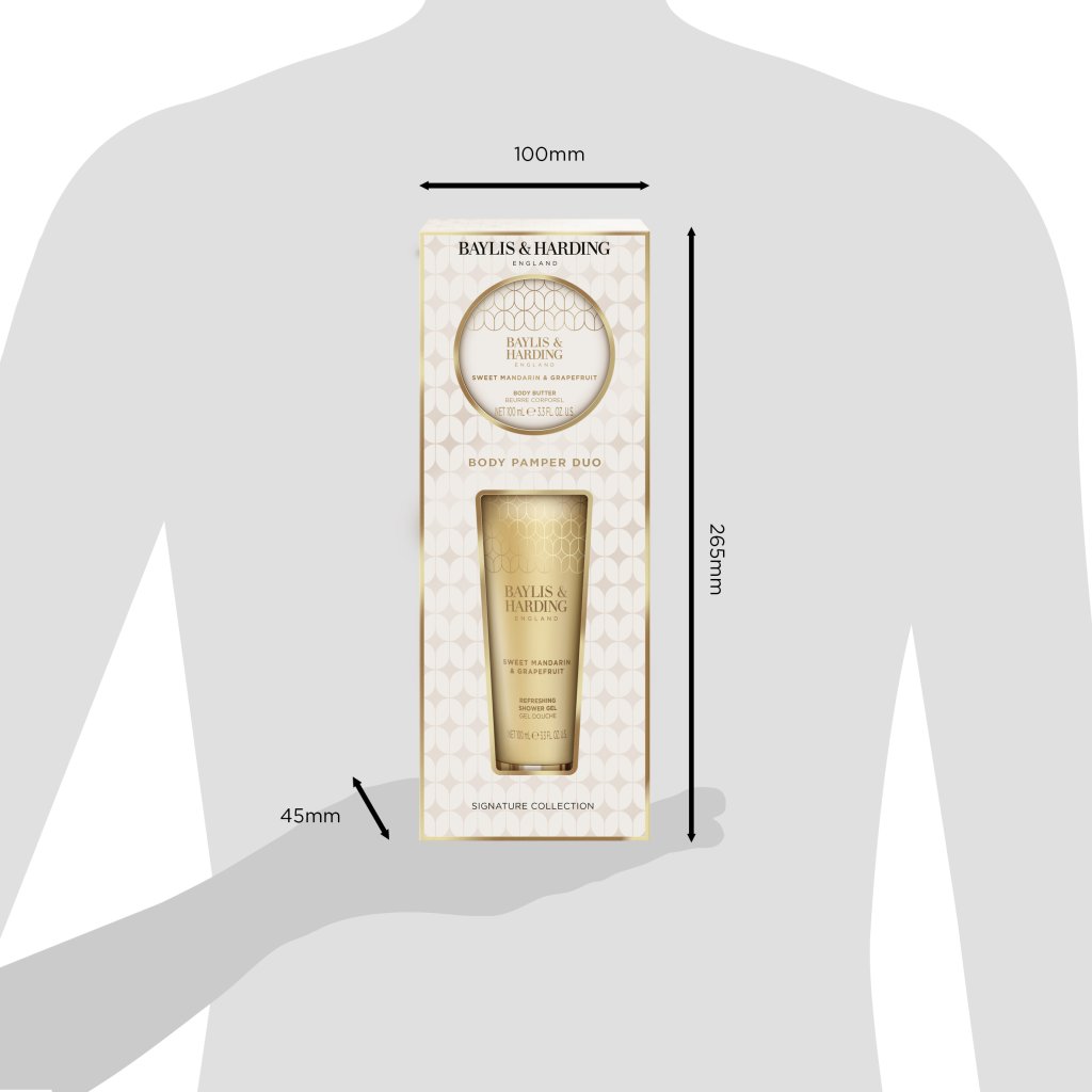 Dopřejte si luxusní péči s dárkovou sadou od značky Baylis & Harding! Kombinace osvěžujícího sprchového gelu a vyživujícího tělového másla s vůní sladké mandarinky, šťavnatého grapefruitu a jemného jasmínu přináší zážitek plný svěžesti, s výsledkem nádherně provoněné pokožky. Vhodné pro každodenní použití i jako krásný dárek, třeba pod vánoční stromeček.